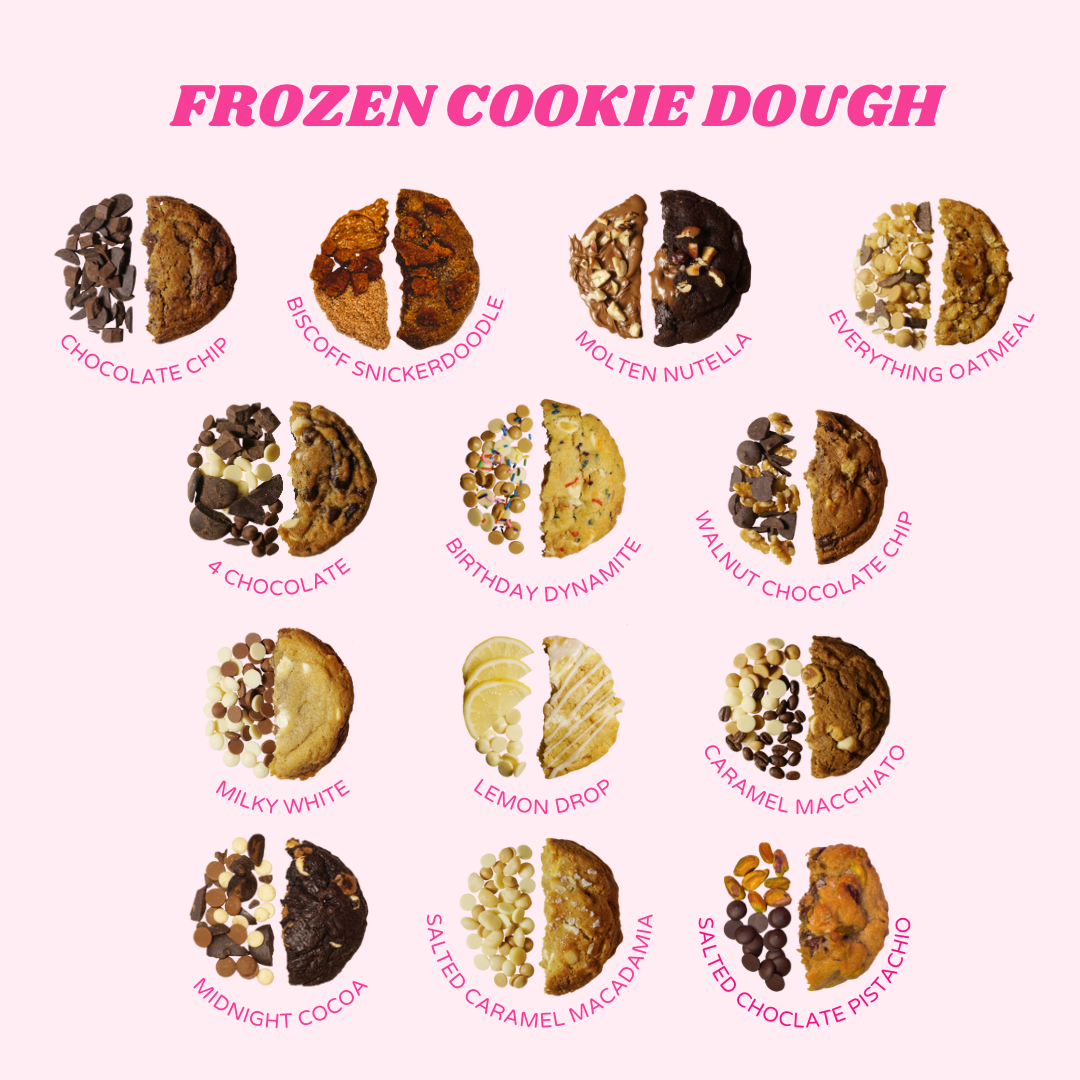 Ready-to-bake frozen cookie dough for freshly baked cookies any time in the comfort of your home. Let your imagination run wild and use this cookie dough any way your heart desires.